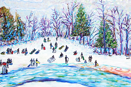 River Mural - Winter, Sledding, Albion, Michigan
